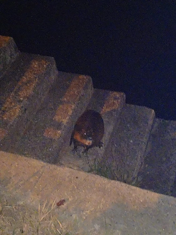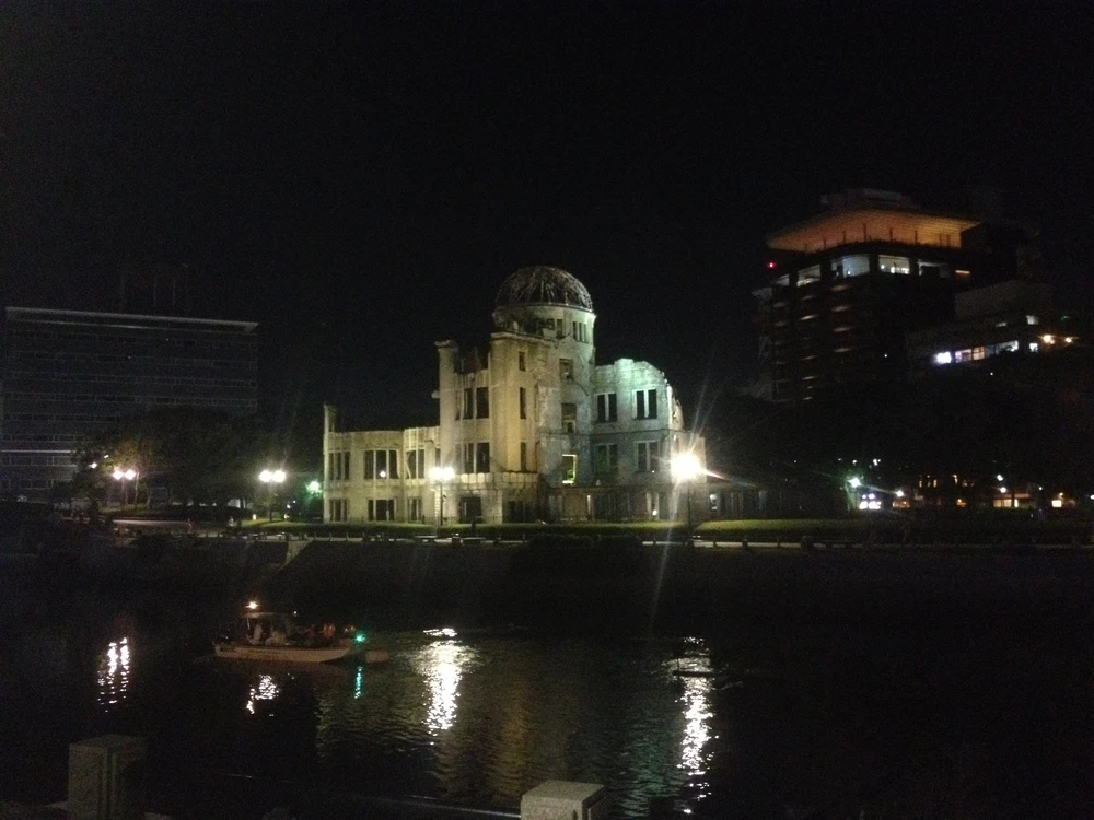 We grabbed some dinner on a park bench and then went looking for a place to sleep. As we walked along the river, we saw something moving. «Is it a cat? No, a monkey! Wait, maybe an otter? No… it’s a giant rat!» Honestly, we still don’t know what it was, but given we were in the city of the atomic bomb, we joked it was some kind of radioactive monster and decided to find a safer spot!